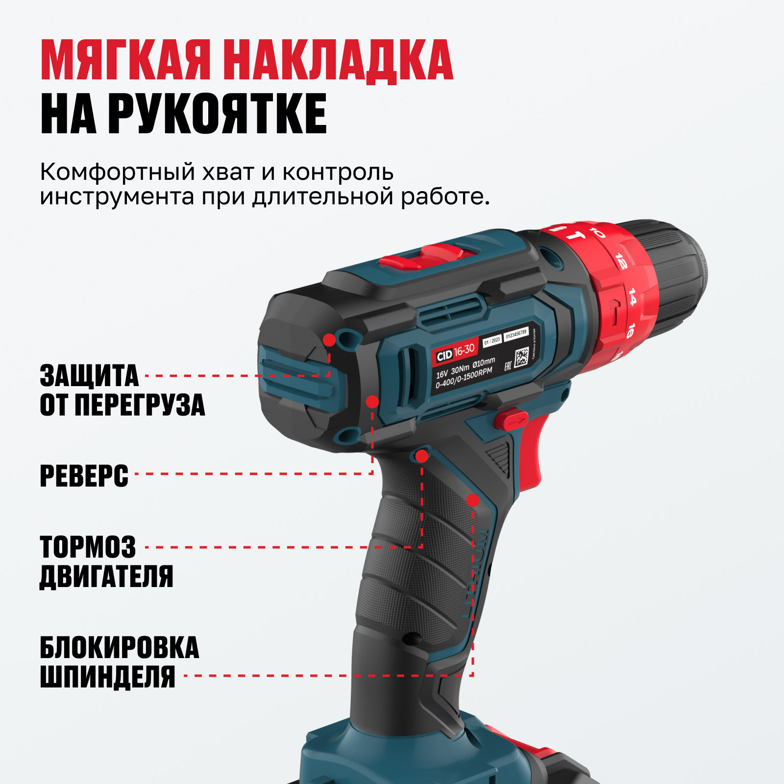 - Крутящий момент 30 Нм — справляется с крепежом в твердых материалах.