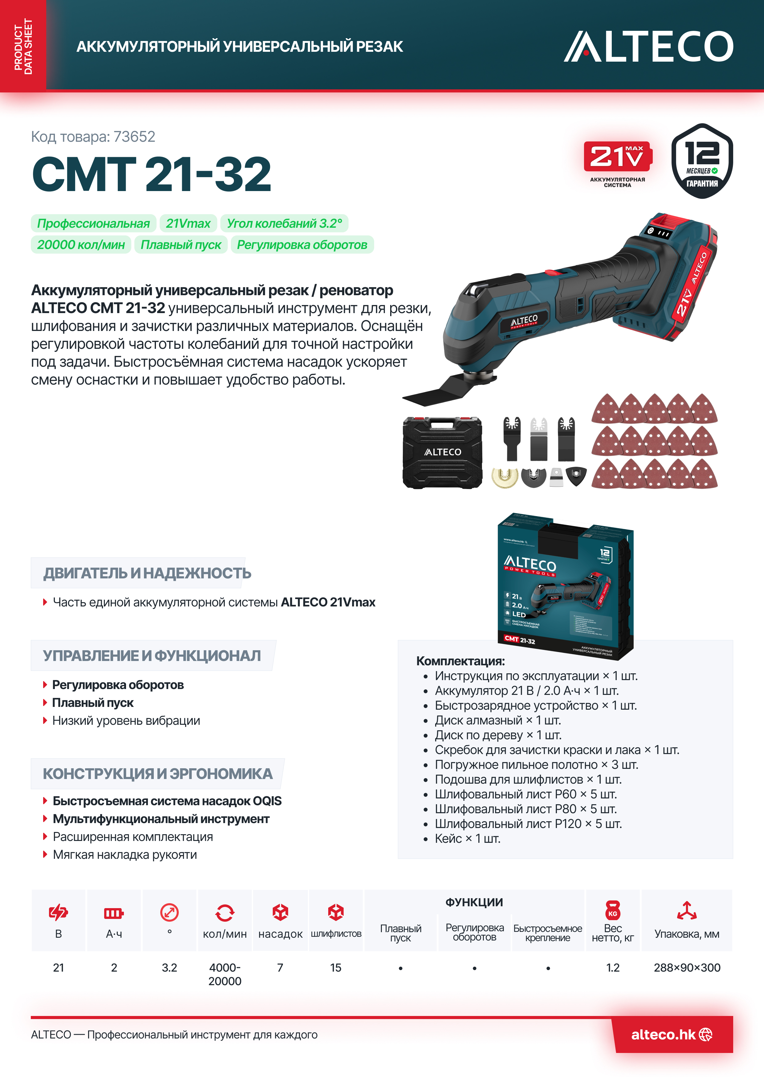| Серия аккумулятора | 21Vmax ALTECO |