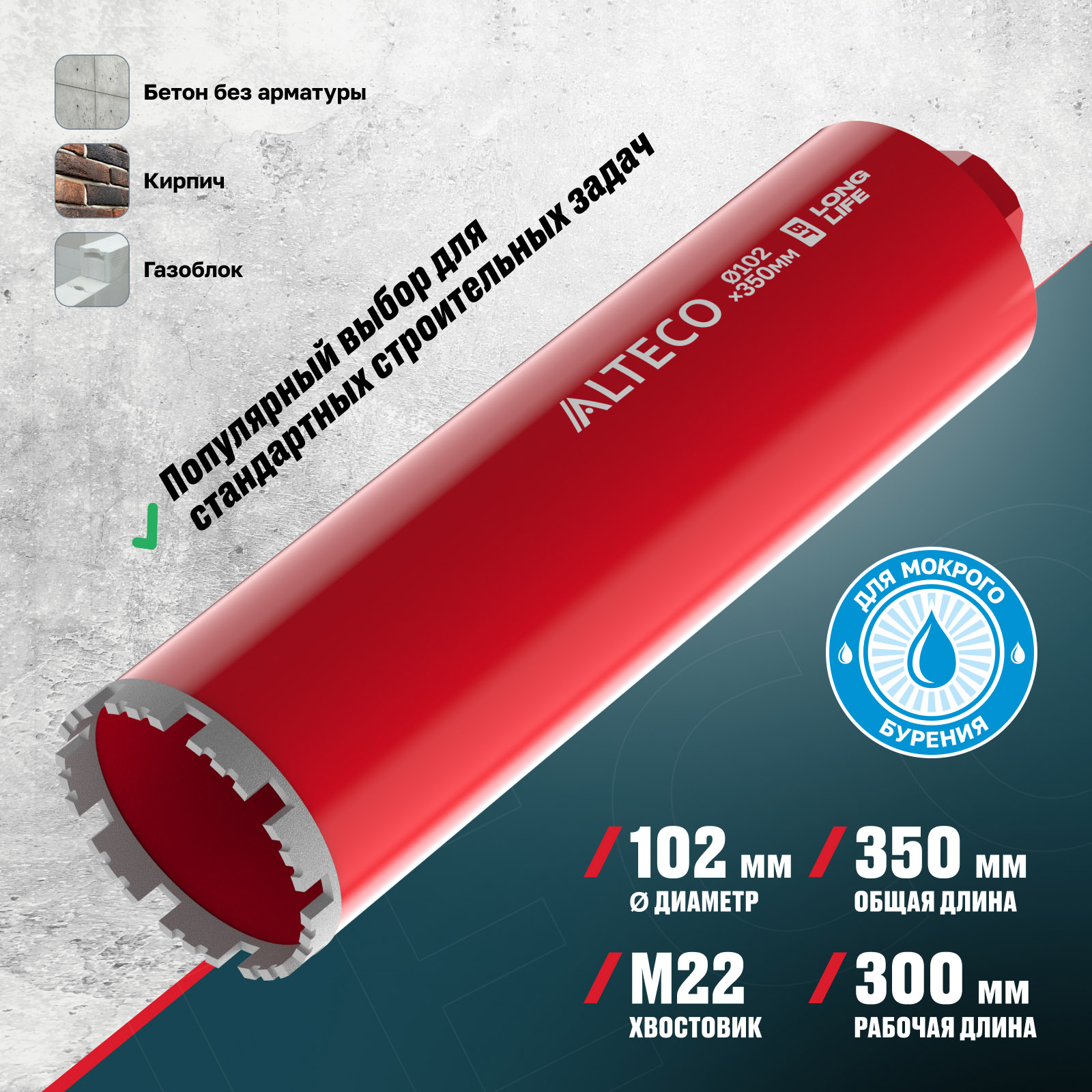 ⚠️ Важно: Данная коронка не предназначена для сухого бурения. Используйте охлаждение водой для продления срока службы инструмента и коронки. Не предназначена для работы с инструментом с микроударом.
