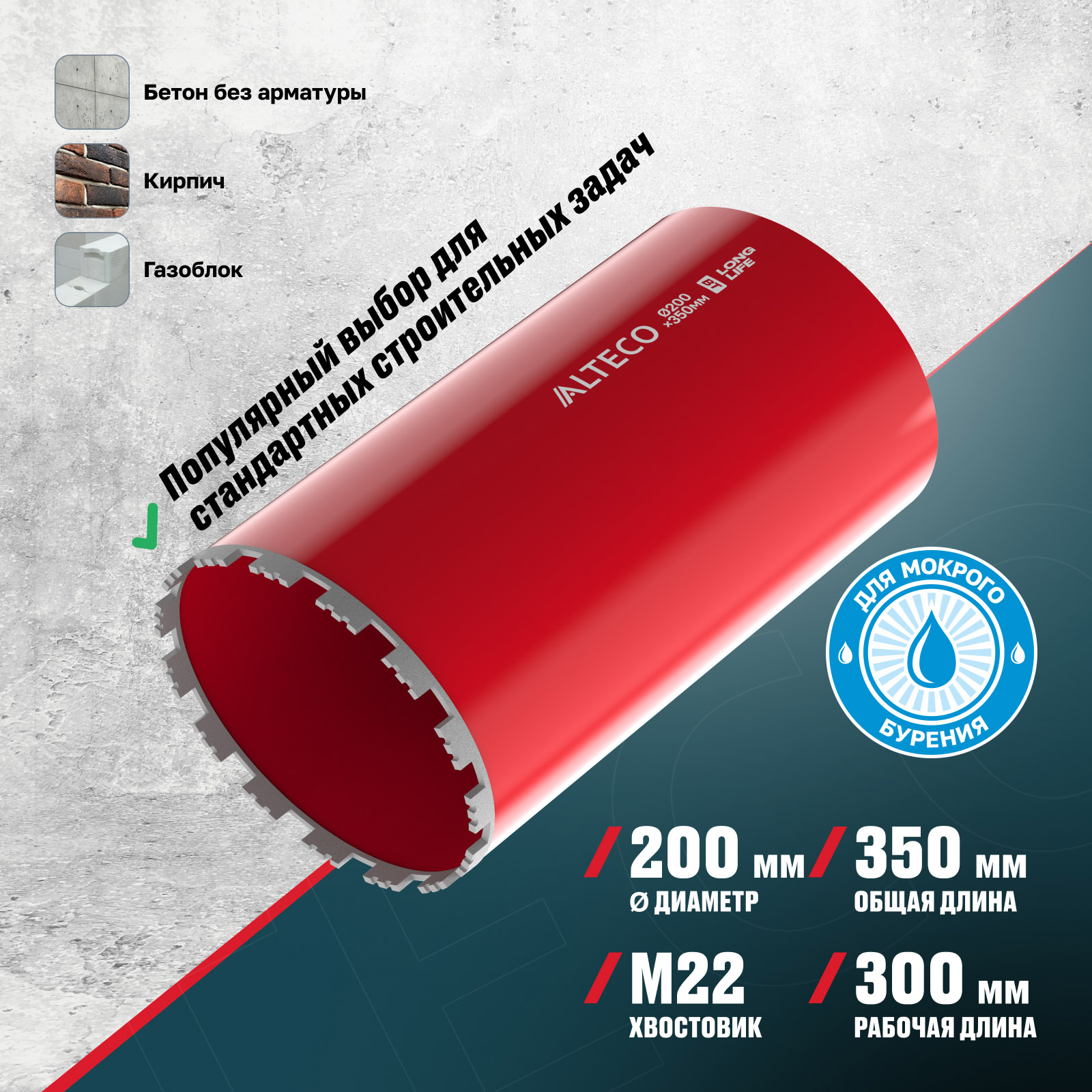 - Глубина сверления до 300 мм — позволяет проходить большинство стен и перекрытий за один заход без необходимости высверливать керн.