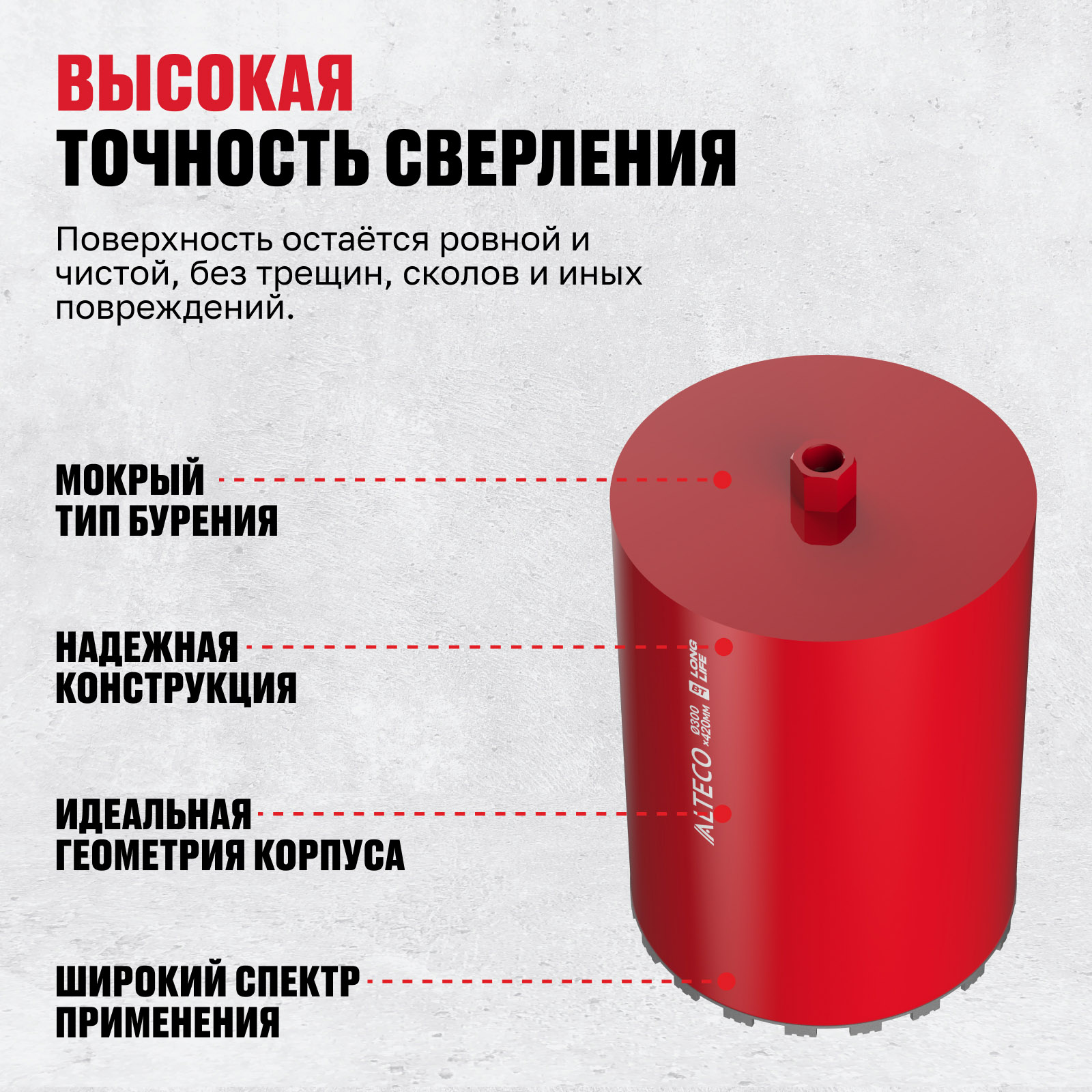⚠️ Важно: Данная коронка не предназначена для сухого бурения. Используйте охлаждение водой для продления срока службы инструмента и коронки. Не предназначена для работы с инструментом с микроударом.