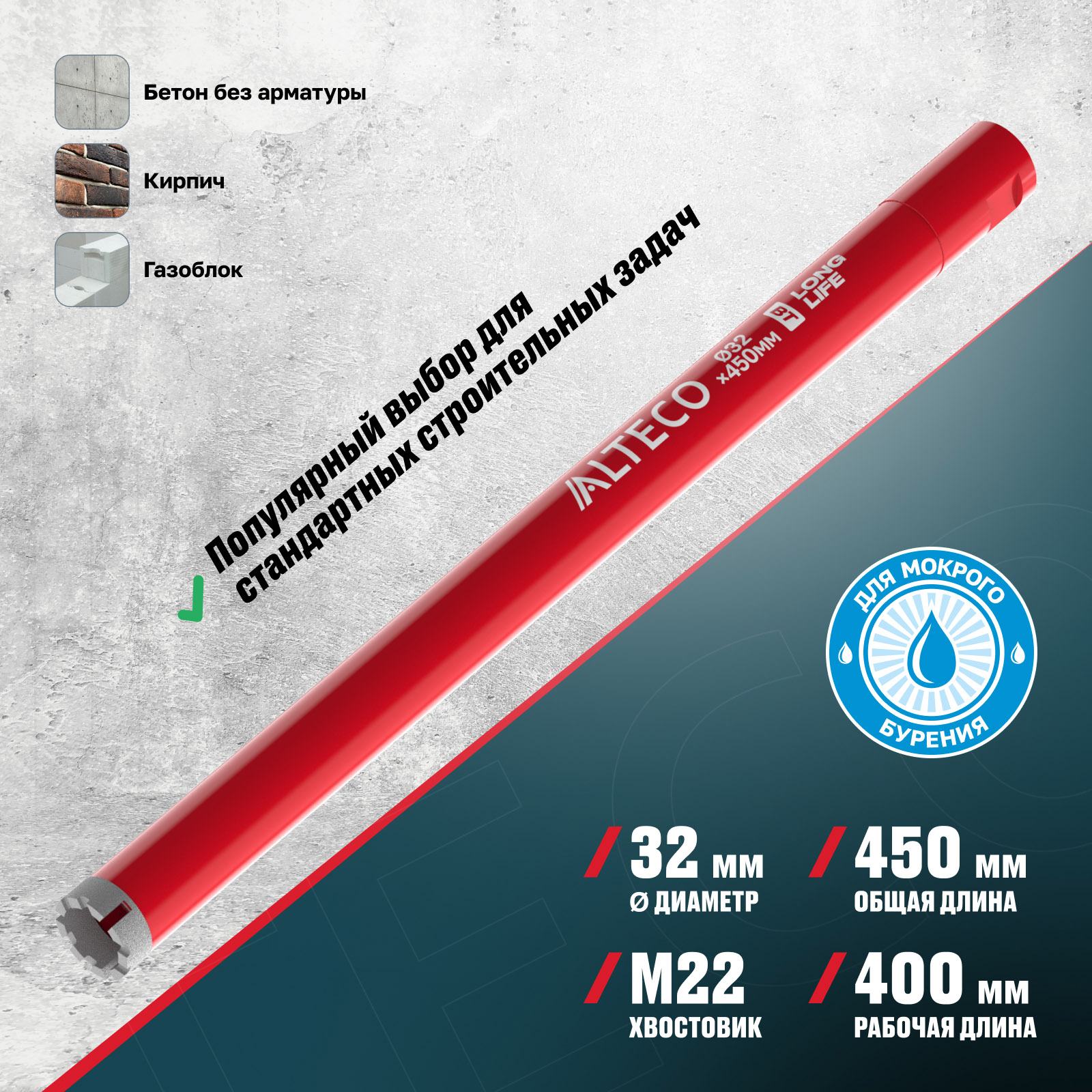- Глубина сверления до 400 мм — позволяет проходить большинство стен и перекрытий за один заход без необходимости высверливать керн.