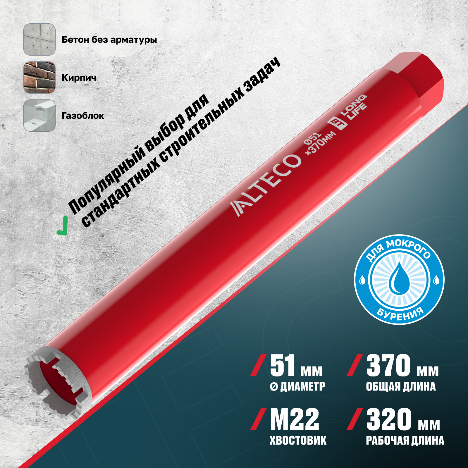 ⚠️ Важно: Данная коронка не предназначена для сухого бурения. Используйте охлаждение водой для продления срока службы инструмента и коронки. Не предназначена для работы с инструментом с микроударом.