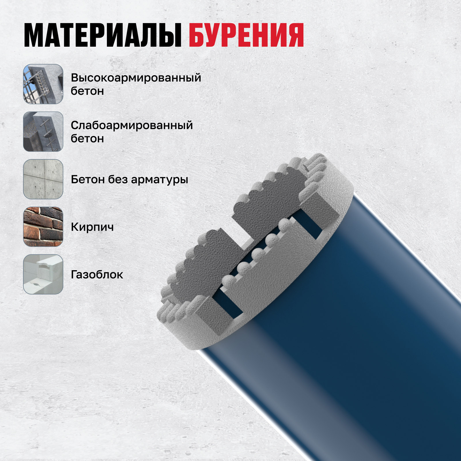 | Бурение по высокоармированному бетону | да |