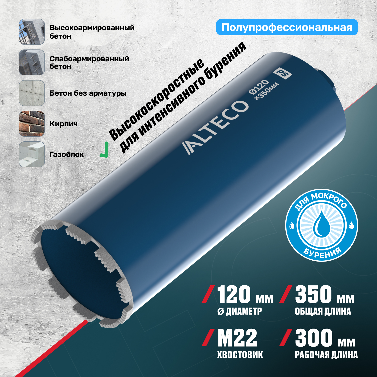 ⚠️ Важно: Данная коронка не предназначена для сухого бурения. Используйте охлаждение водой для продления срока службы инструмента и коронки. Не предназначена для работы с инструментом с микроударом.