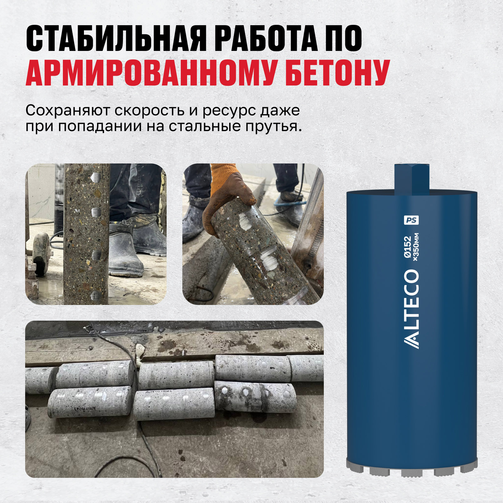 - Мокрый тип бурения — предотвращает перегрев и продлевает срок службы коронки.