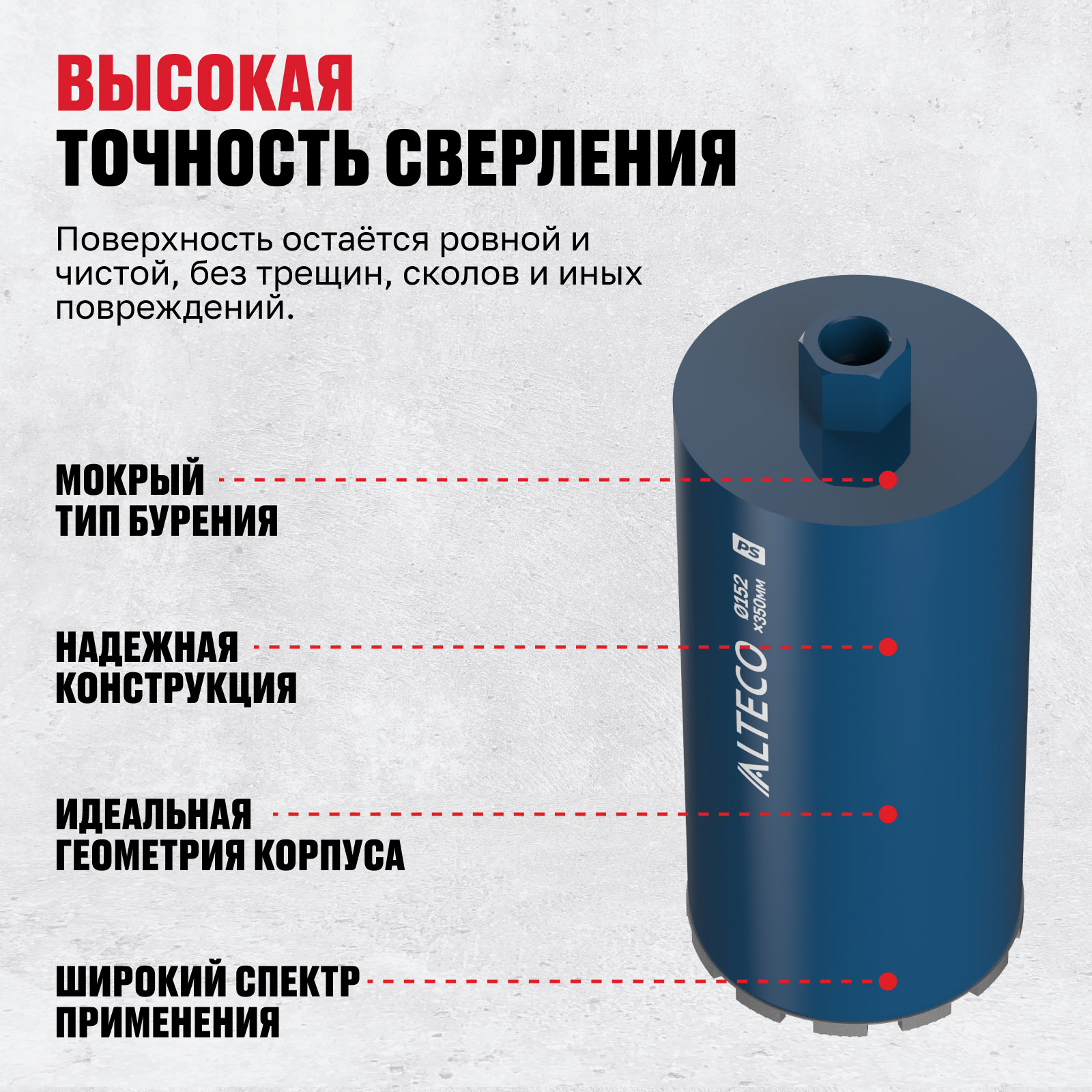 ⚠️ Важно: Данная коронка не предназначена для сухого бурения. Используйте охлаждение водой для продления срока службы инструмента и коронки. Не предназначена для работы с инструментом с микроударом.