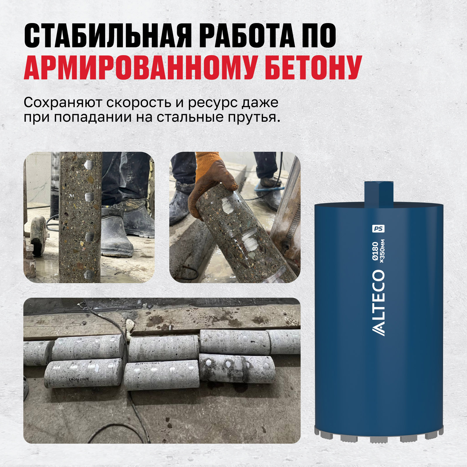 - Стабильная работа по армированному бетону — сохраняют скорость и ресурс даже при попадании на стальные прутья.