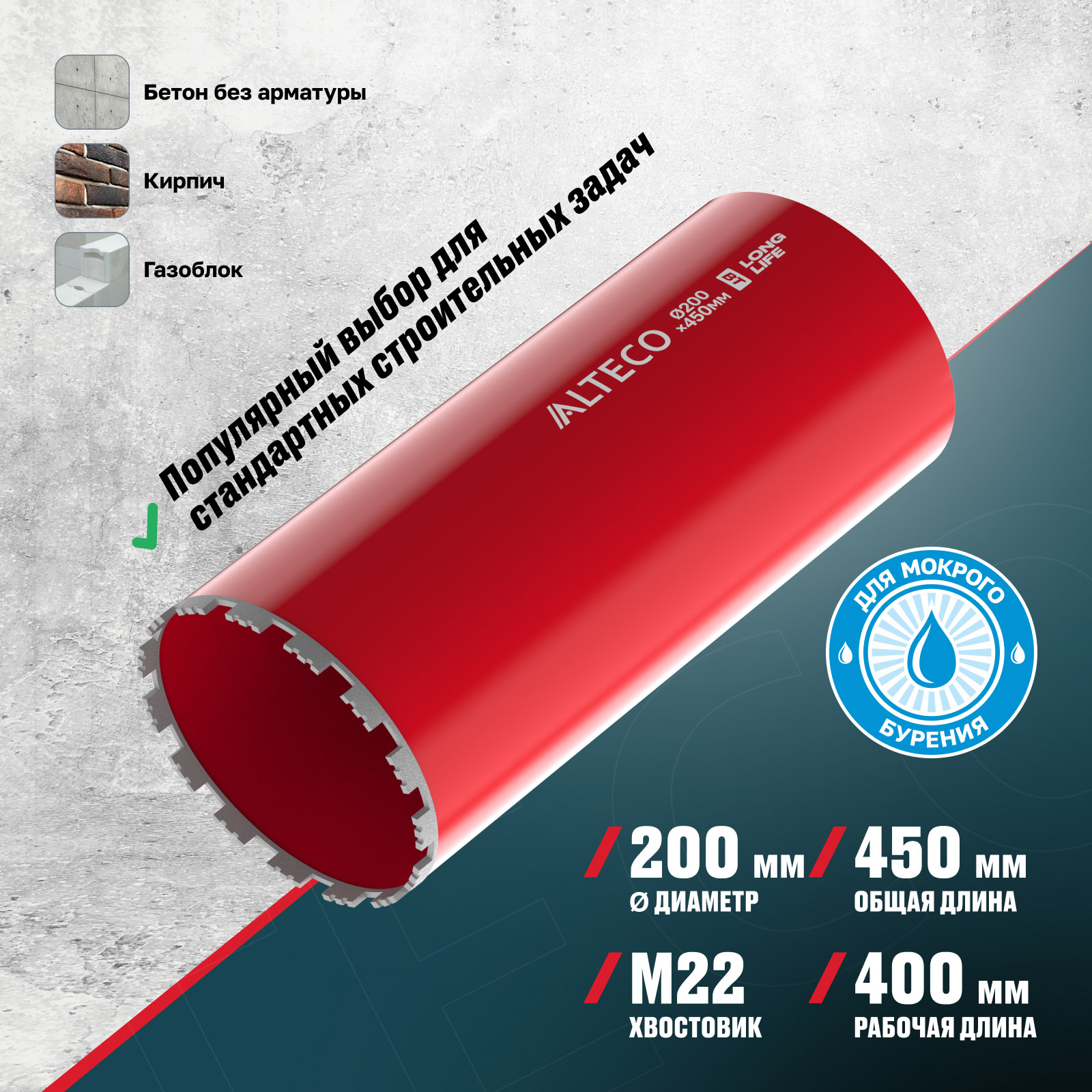 - Глубина сверления до 400 мм — позволяет проходить большинство стен и перекрытий за один заход без необходимости высверливать керн.