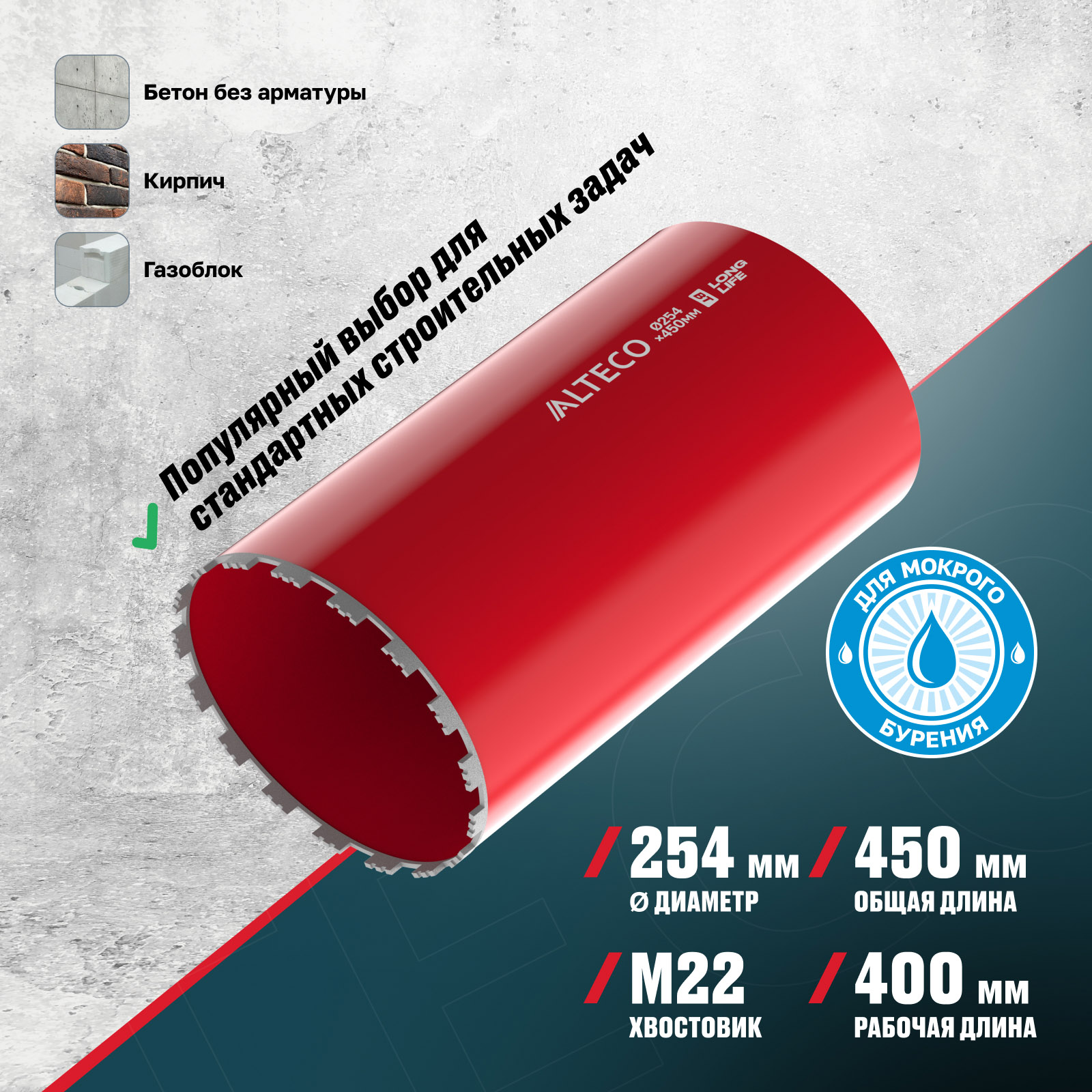 - Глубина сверления до 400 мм — позволяет проходить большинство стен и перекрытий за один заход без необходимости высверливать керн.