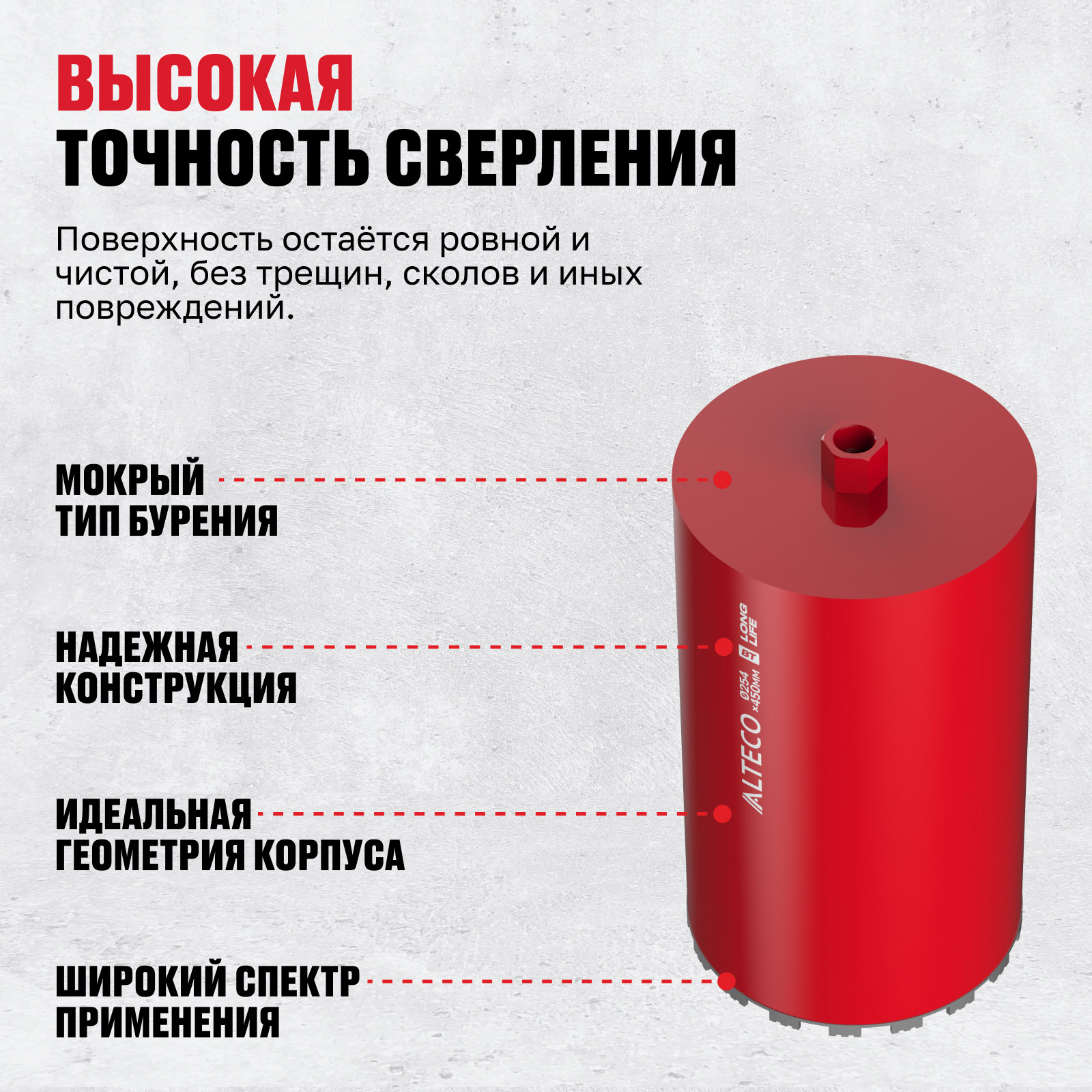 - Высокая точность сверления — поверхность остаётся ровной и чистой, без трещин, сколов и иных повреждений.
