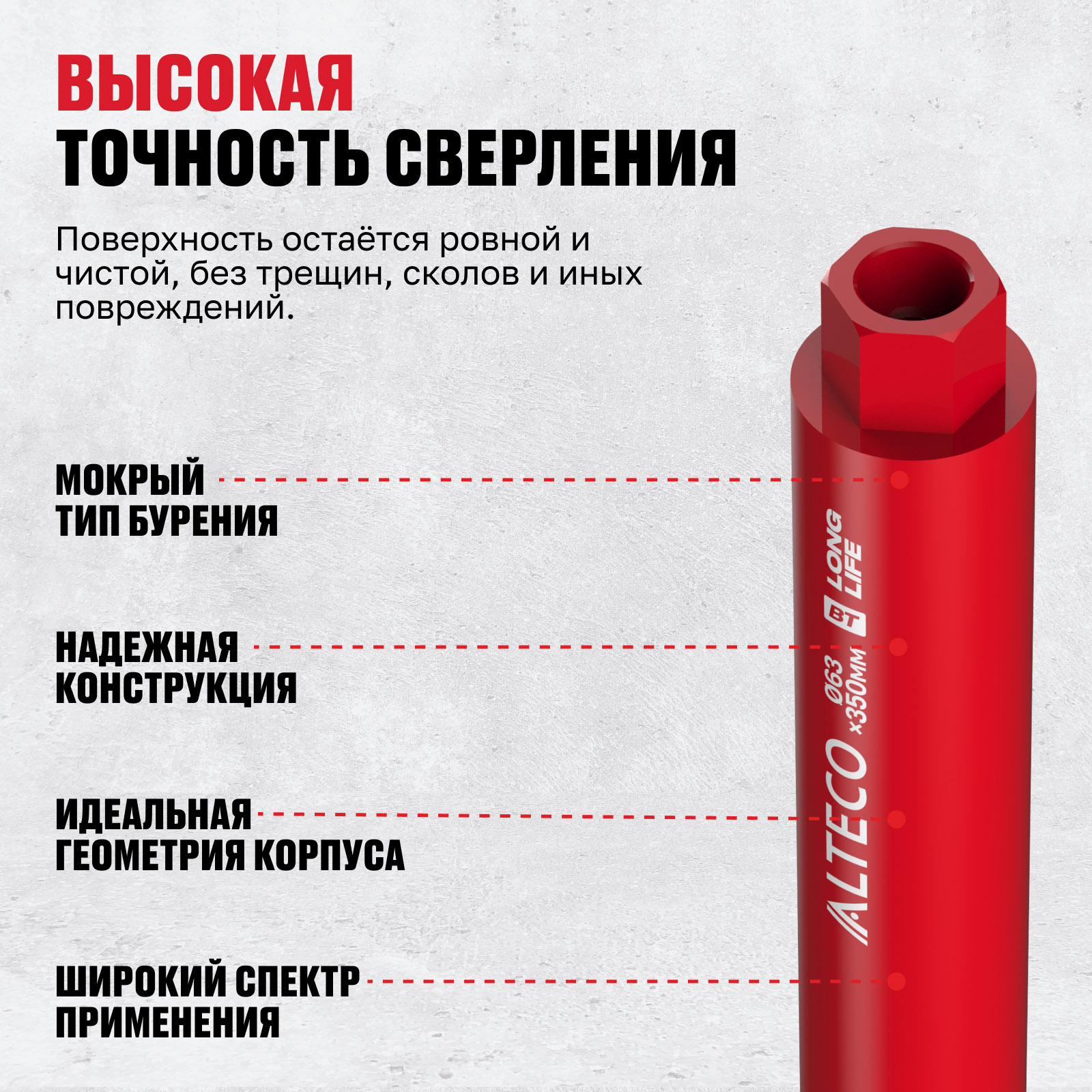 ⚠️ Важно: Данная коронка не предназначена для сухого бурения. Используйте охлаждение водой для продления срока службы инструмента и коронки. Не предназначена для работы с инструментом с микроударом.