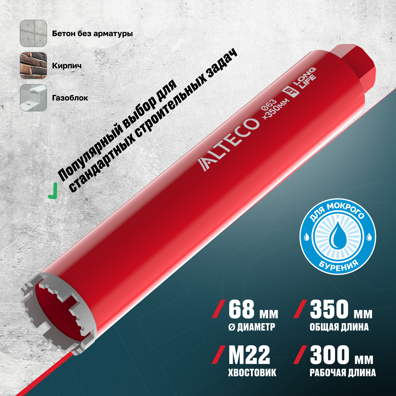 ⚠️ Важно: Данная коронка не предназначена для сухого бурения. Используйте охлаждение водой для продления срока службы инструмента и коронки. Не предназначена для работы с инструментом с микроударом.