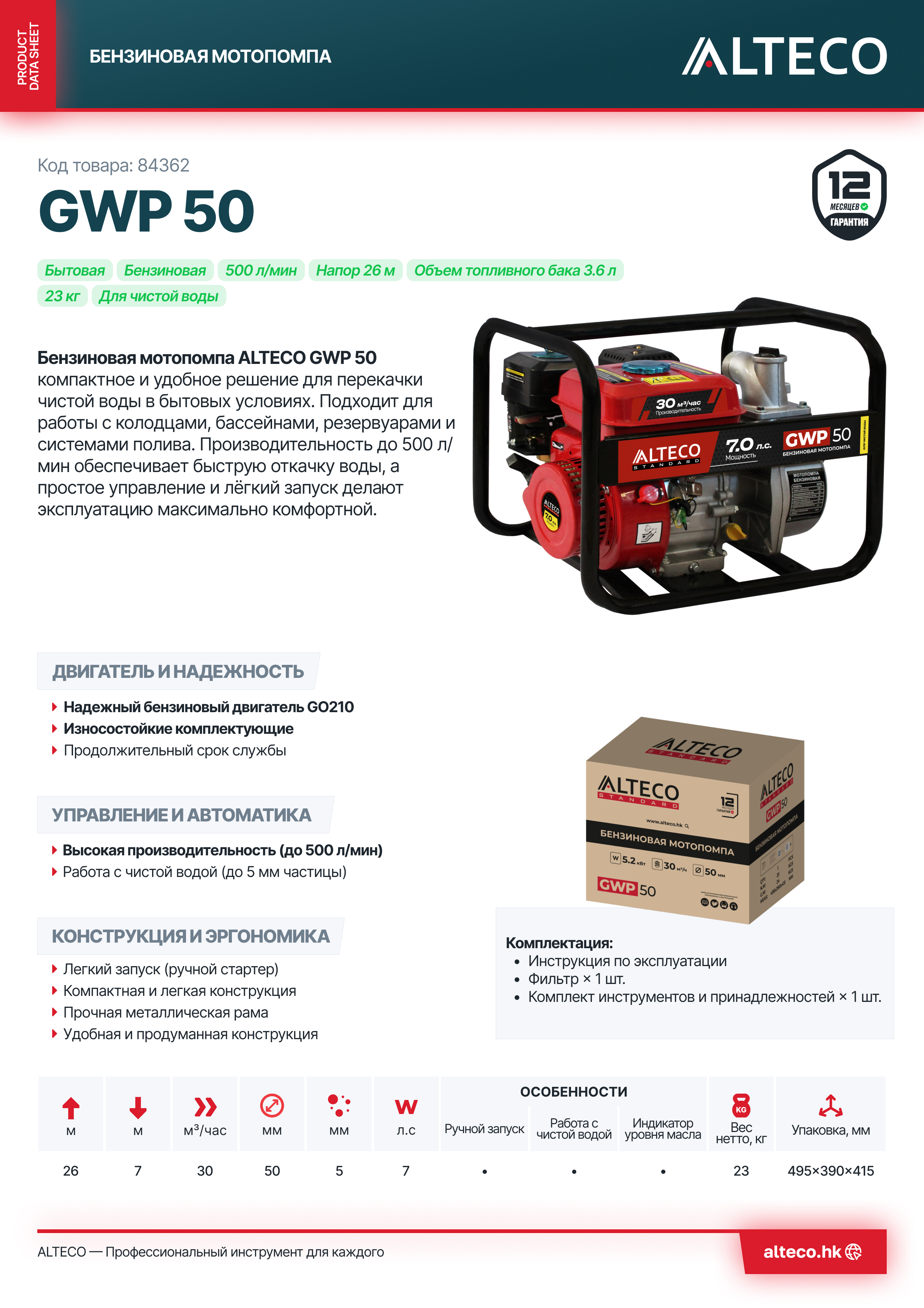 Преимущества ALTECO GWP 50