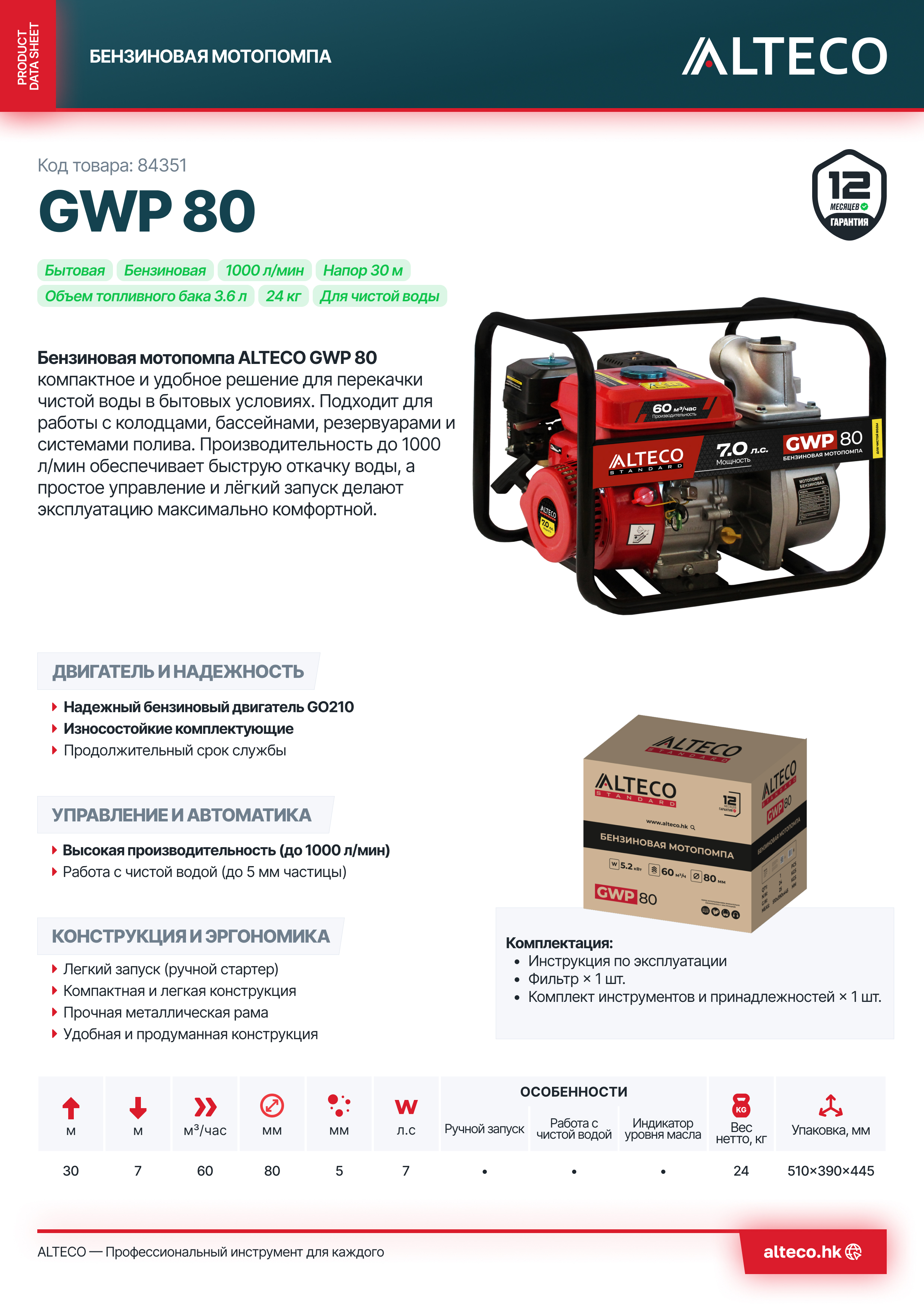 Преимущества ALTECO GWP 80