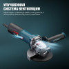 - Быстросъемный защитный кожух — надёжно защищает от искр и абразивных частиц, легко регулируется без инструмента.