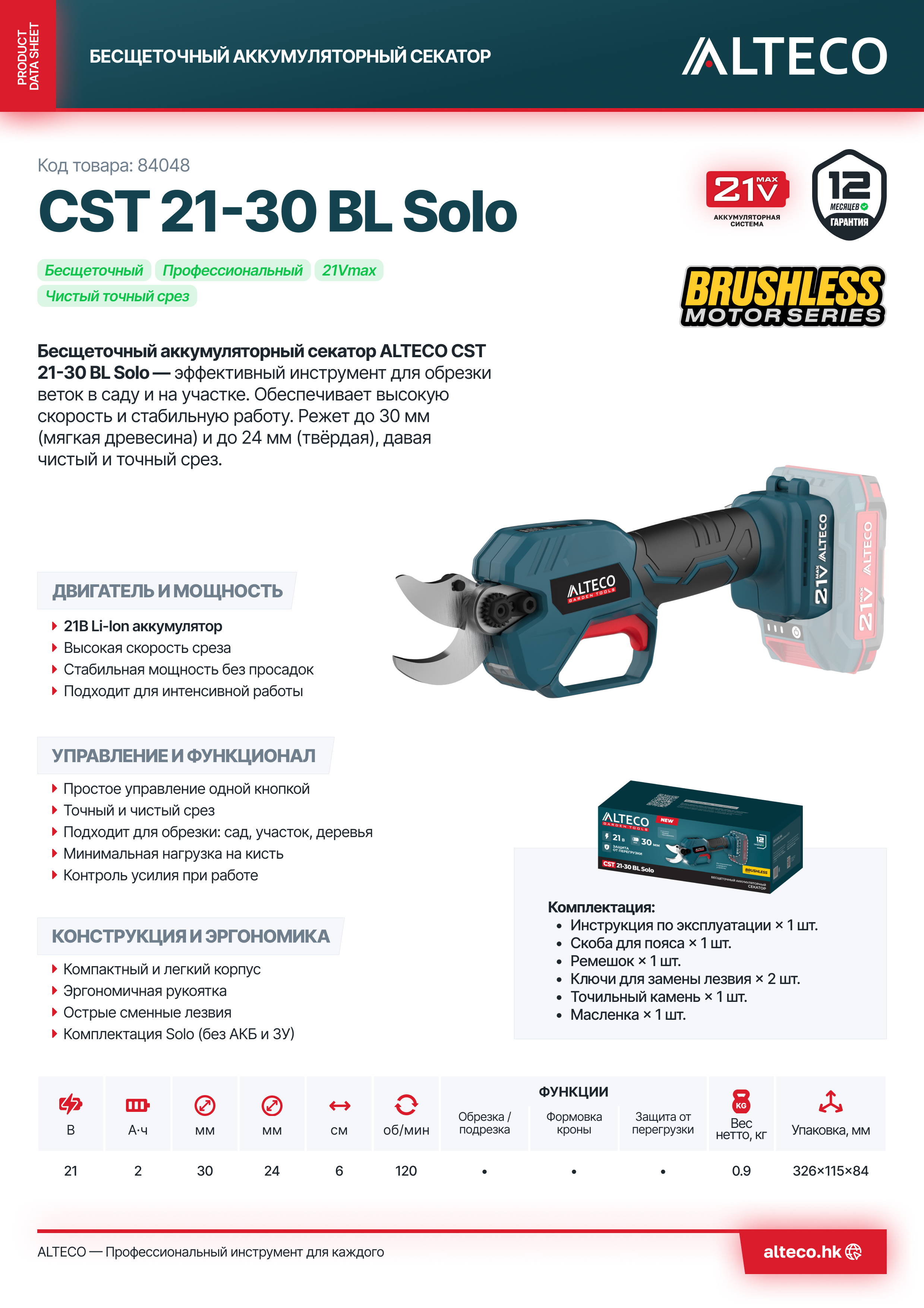 - Часть единой аккумуляторной системы ALTECO 21Vmax — один аккумулятор подходит для всех инструментов этой серии, обеспечивая удобство, экономию и гибкость в работе.