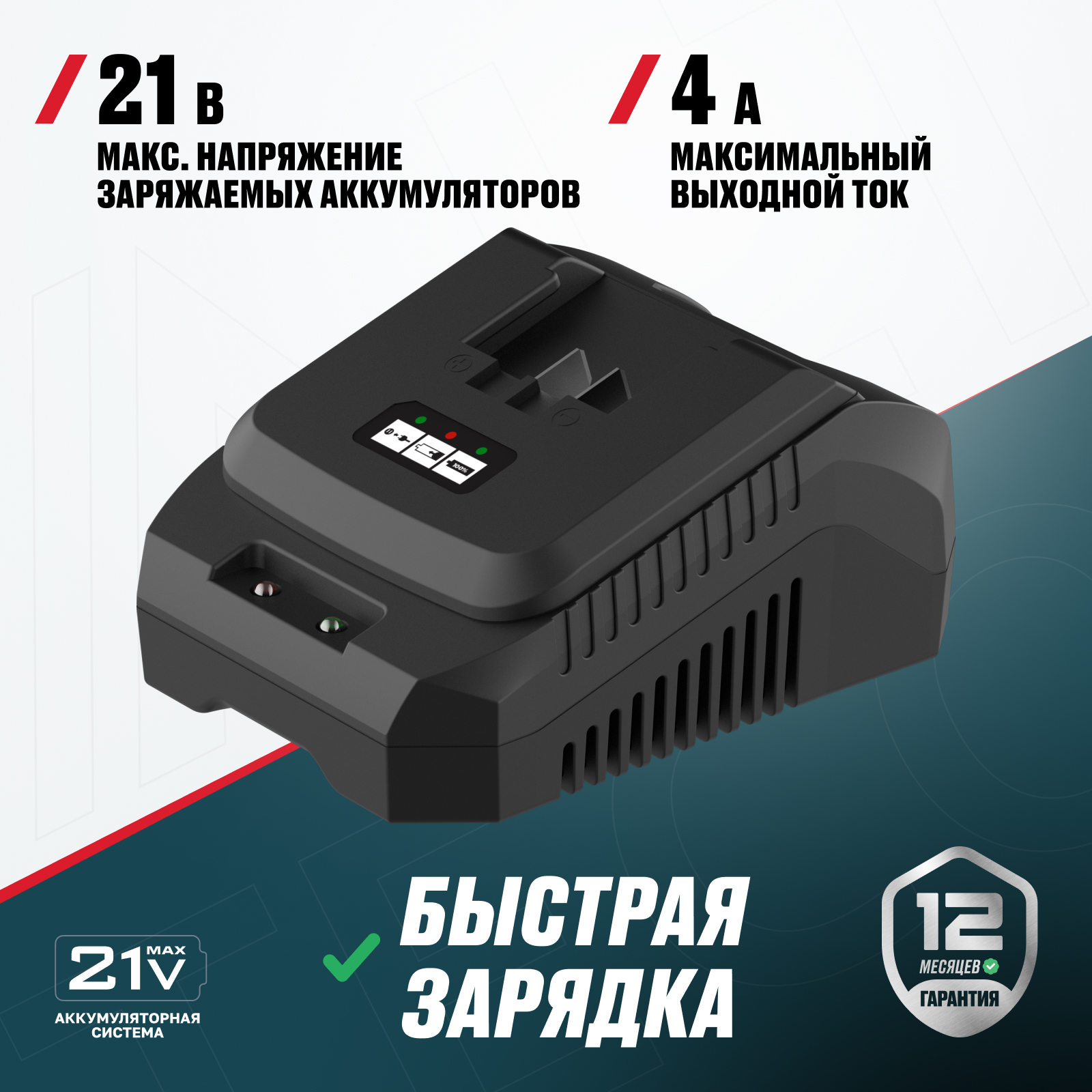 - Быстрая зарядка 4 А — аккумулятор 2 А·ч заряжается до 80% всего за 25 минут, сокращая время простоя инструмента.