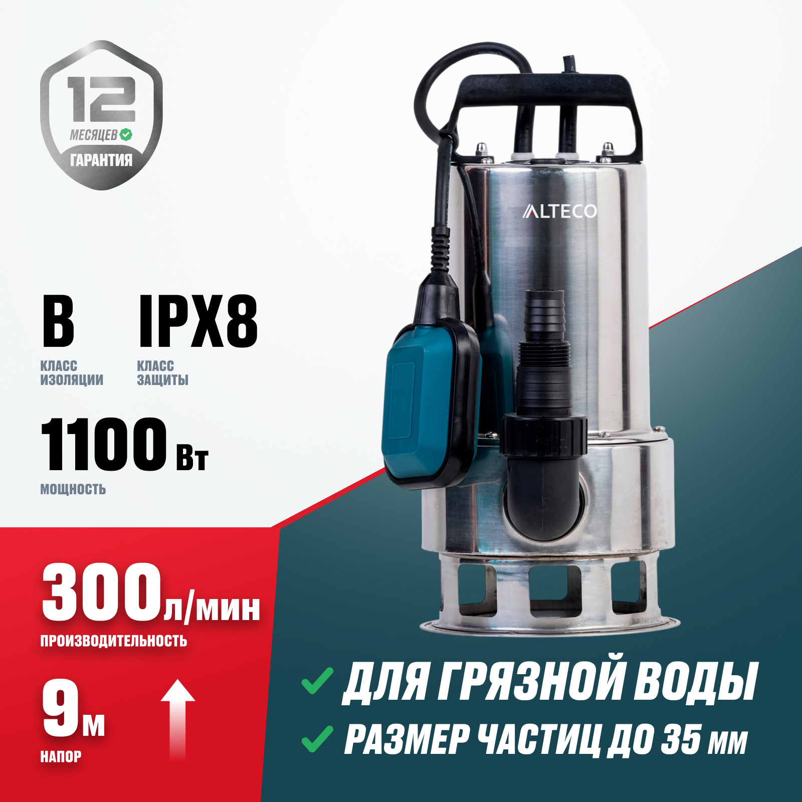 - Автоматическая работа благодаря поплавковому выключателю