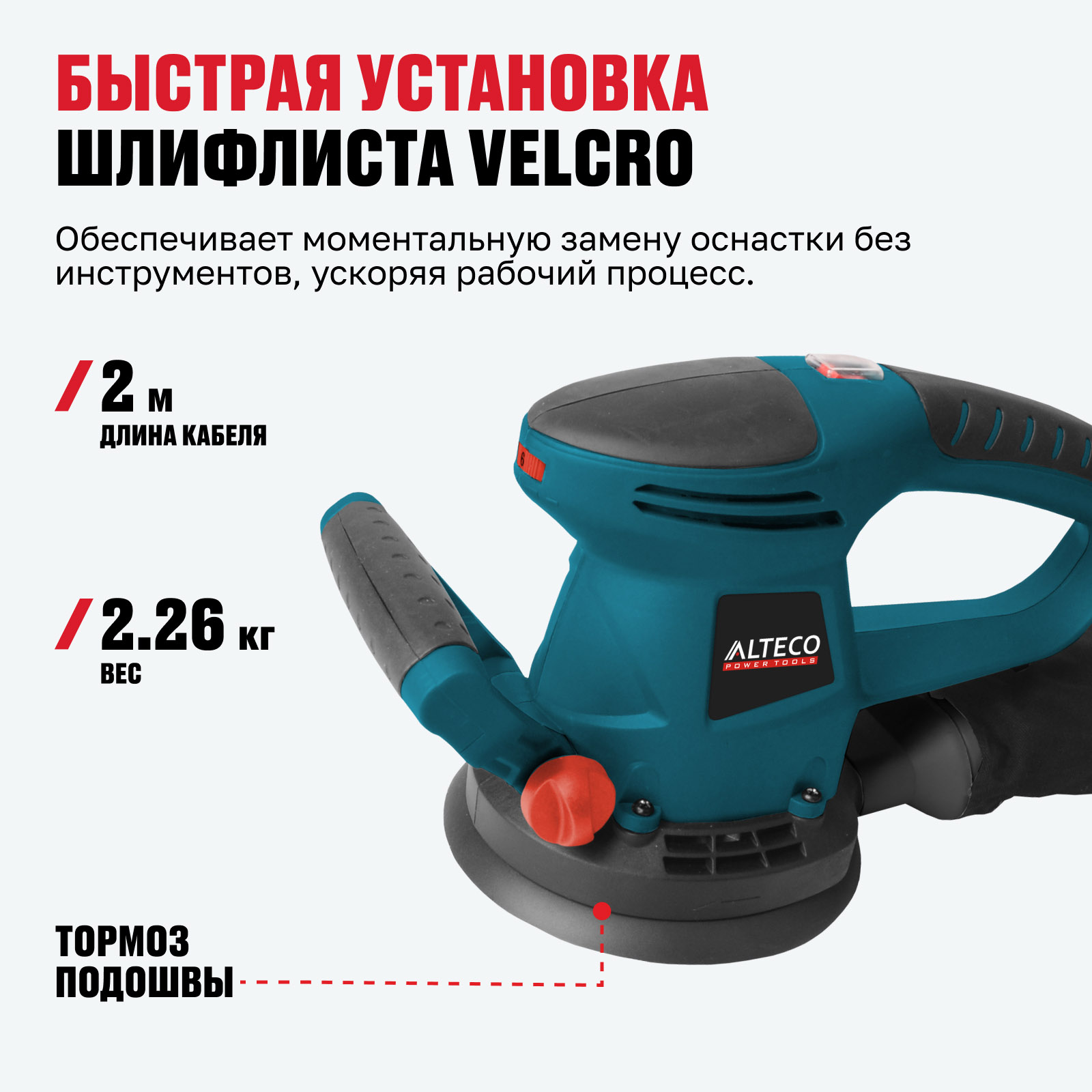 - Быстрая установка шлифлиста Velcro — обеспечивает моментальную замену оснастки без инструментов, ускоряя рабочий процесс.