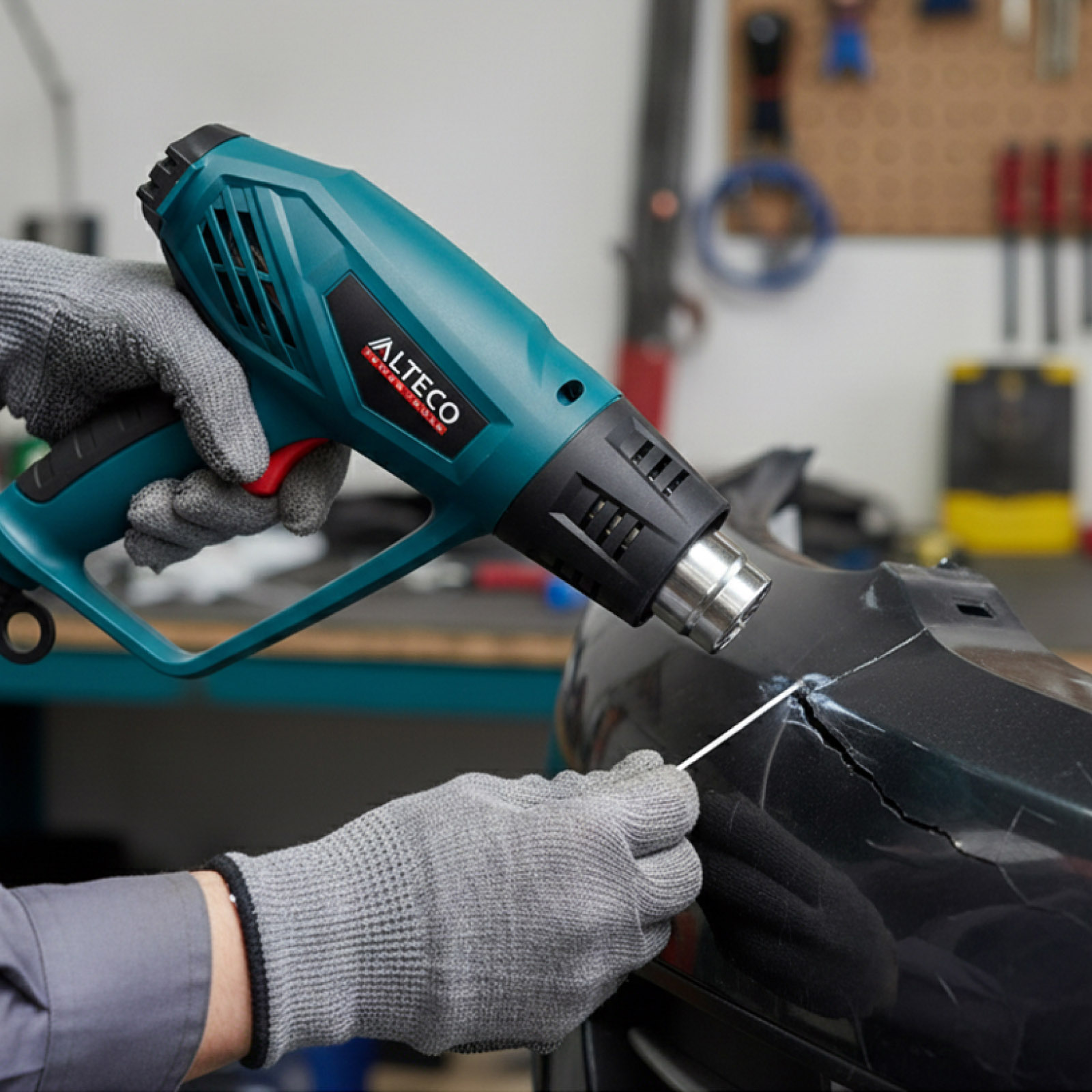 - Пайка горячим воздухом — соединение пластиковых элементов и ремонт трещин.