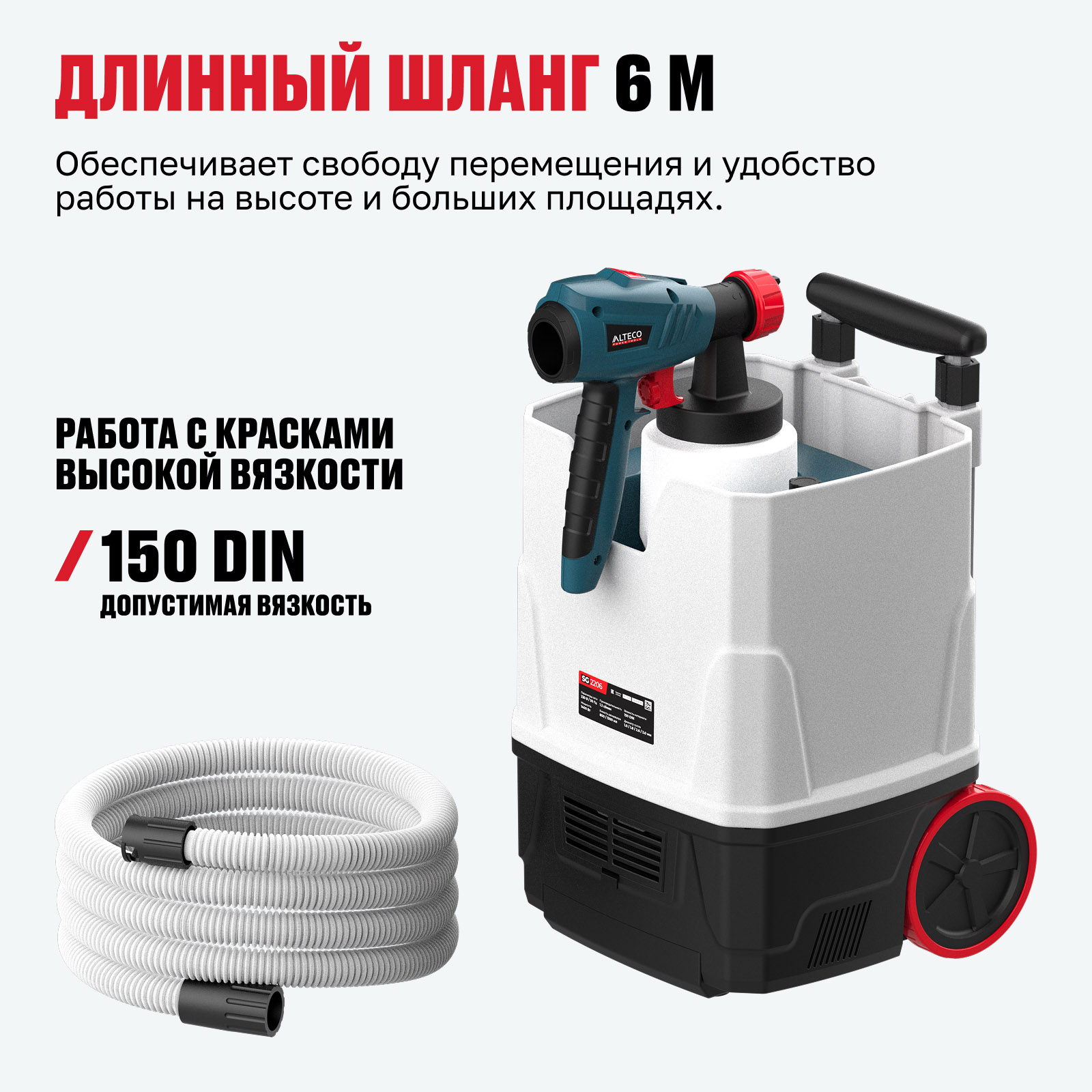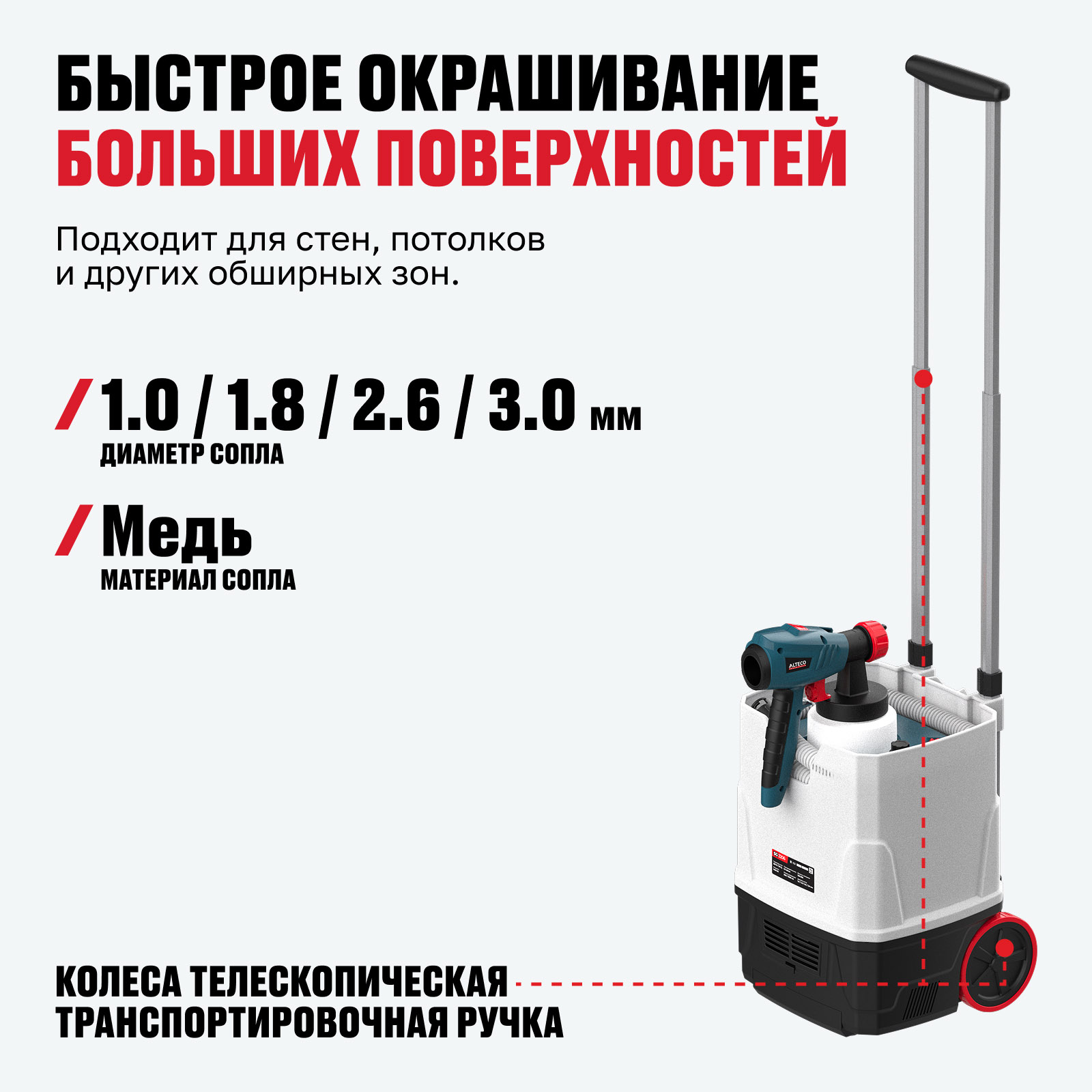 - Высокая производительность 1200 мл/мин — обеспечивает быстрый и равномерный перенос краски, сокращая время выполнения работ.