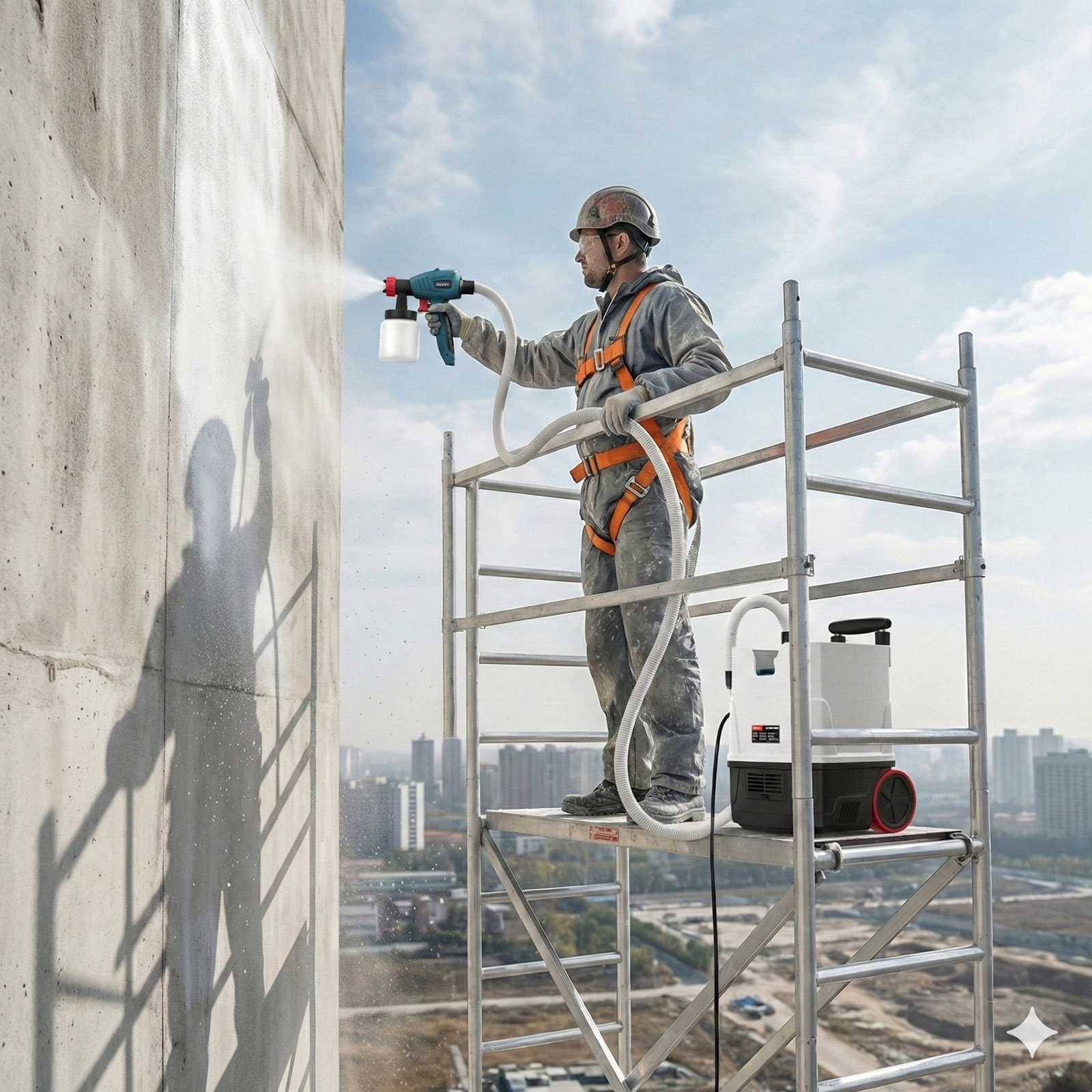 - Разнесенные компрессор и распылитель — снижают нагрузку на руки и повышают комфорт при длительном окрашивании.