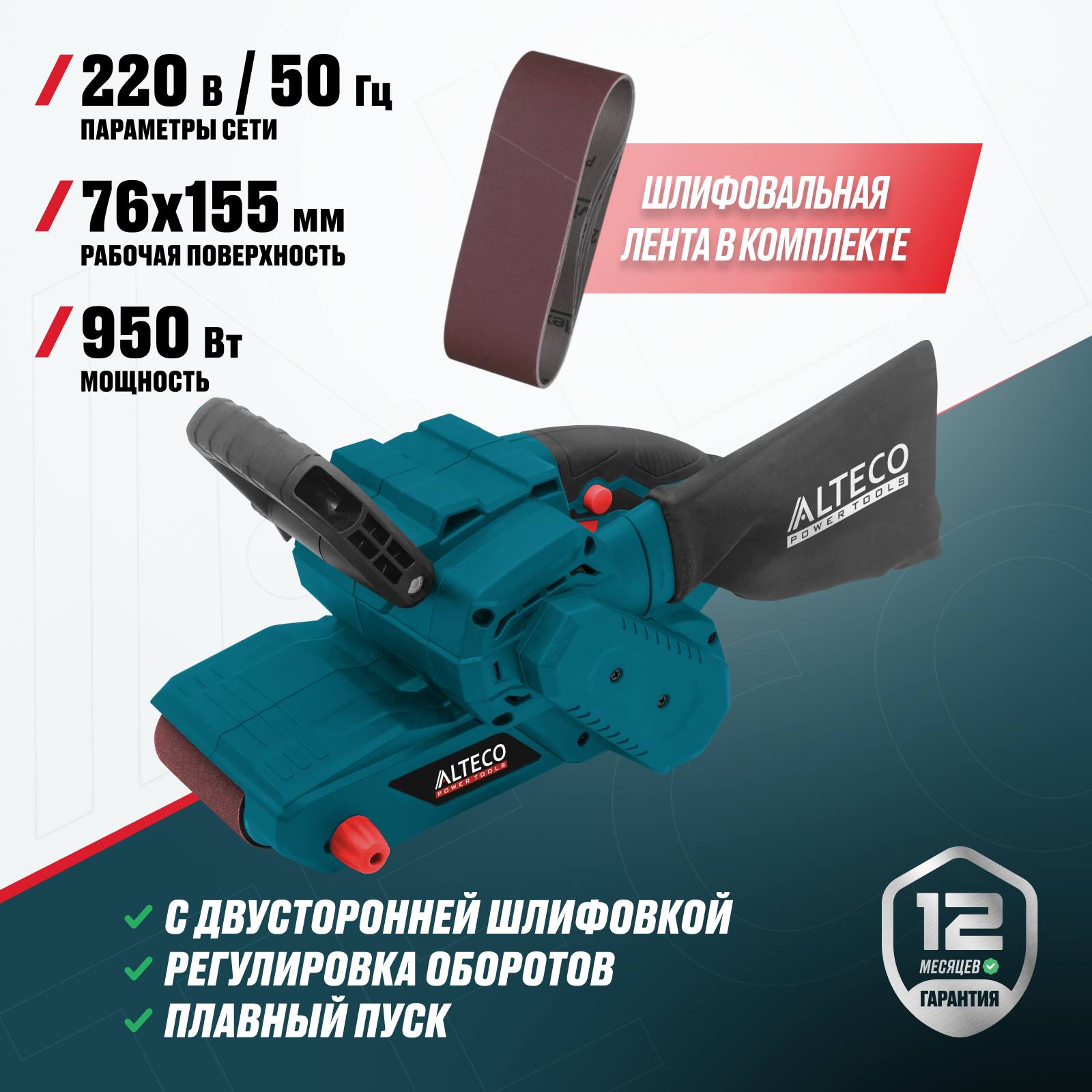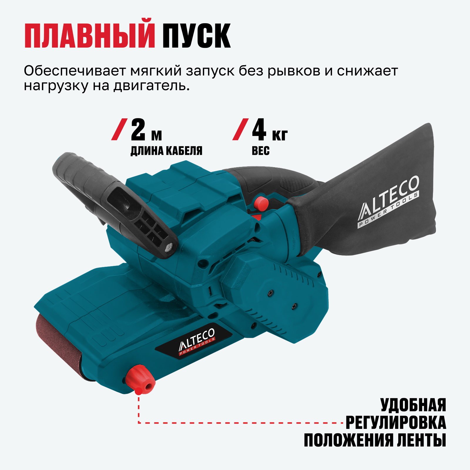 - Удобная регулировка положения ленты — позволяет быстро и точно отцентрировать ленту для стабильного шлифования.