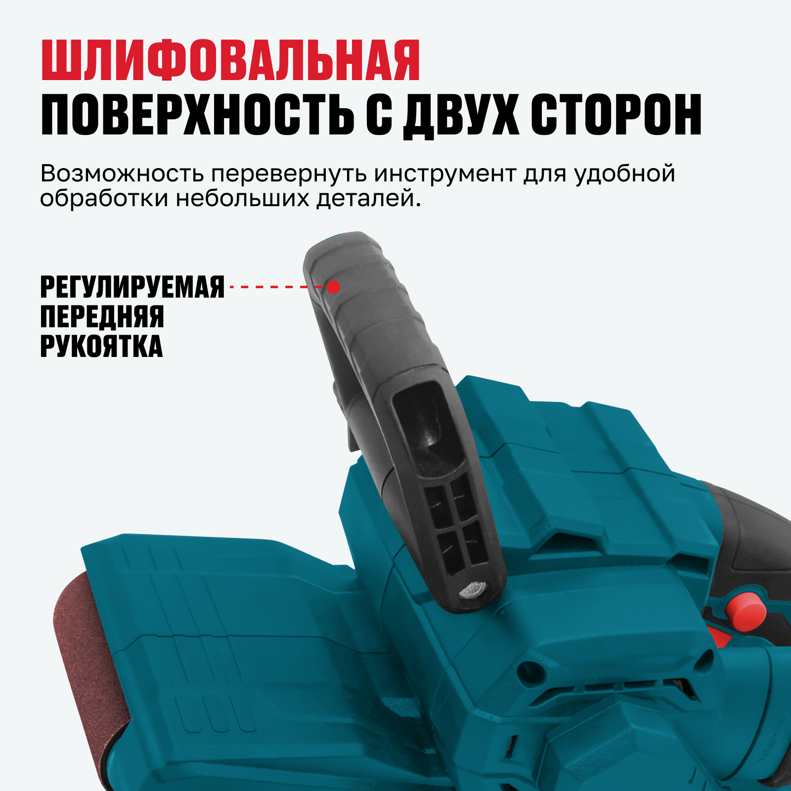 - Безинструментальная замена ленты — упрощает установку и замену шлифовальной ленты без использования инструментов.