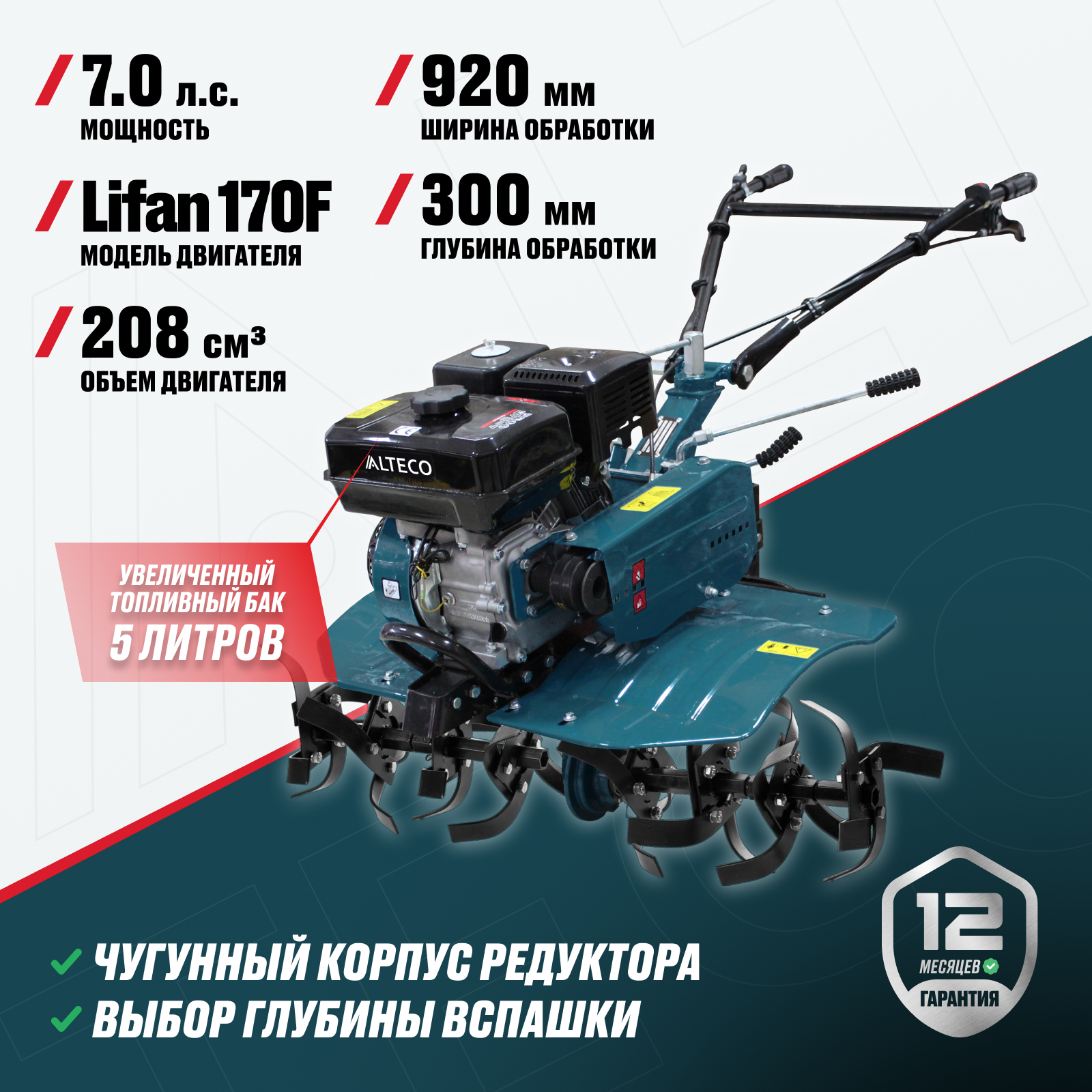 - Увеличенный объем топливного бака 5 литров - обеспечивает продолжительную работу без необходимости частой дозаправки