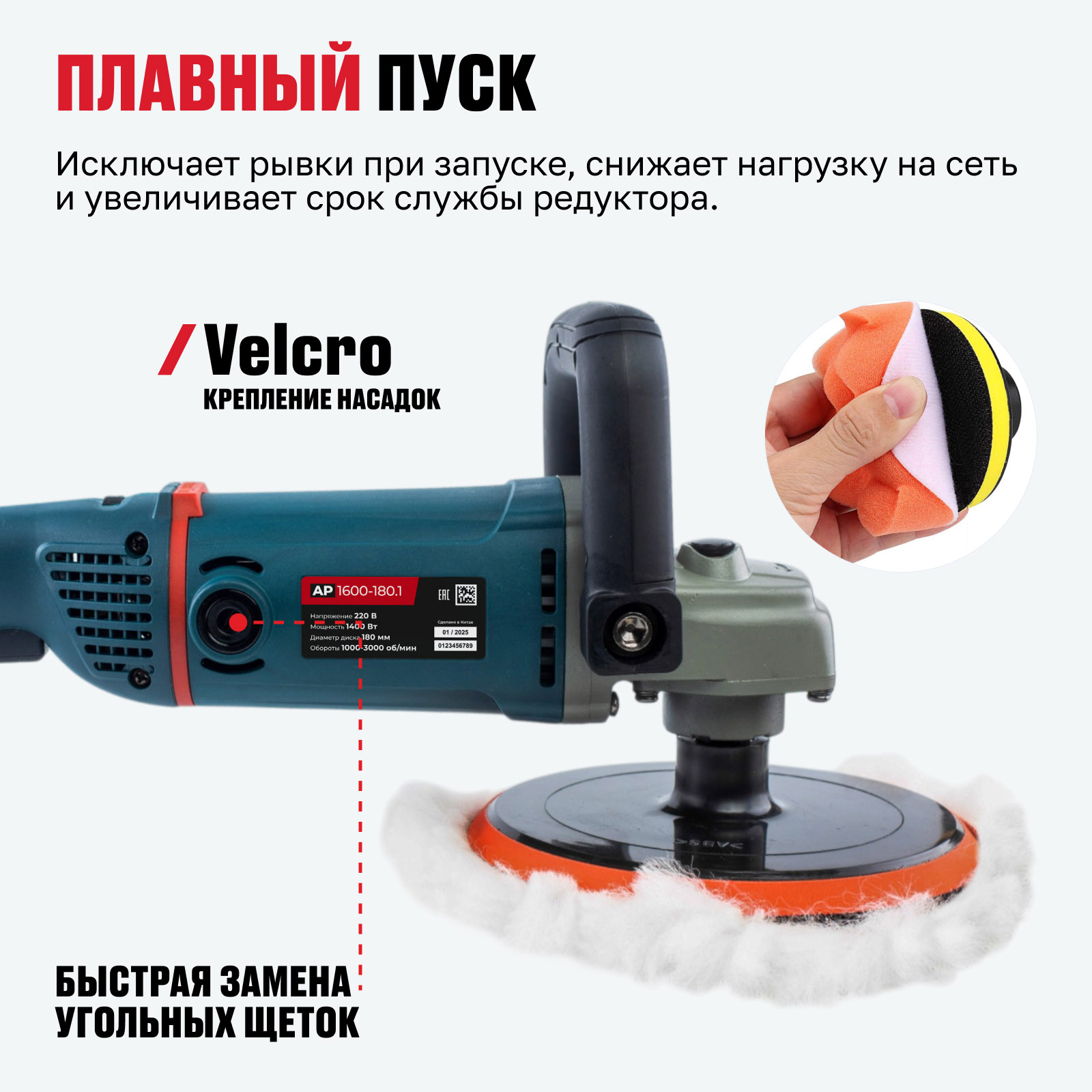 | Крепление полировальных насадок | velcro / на липучке |