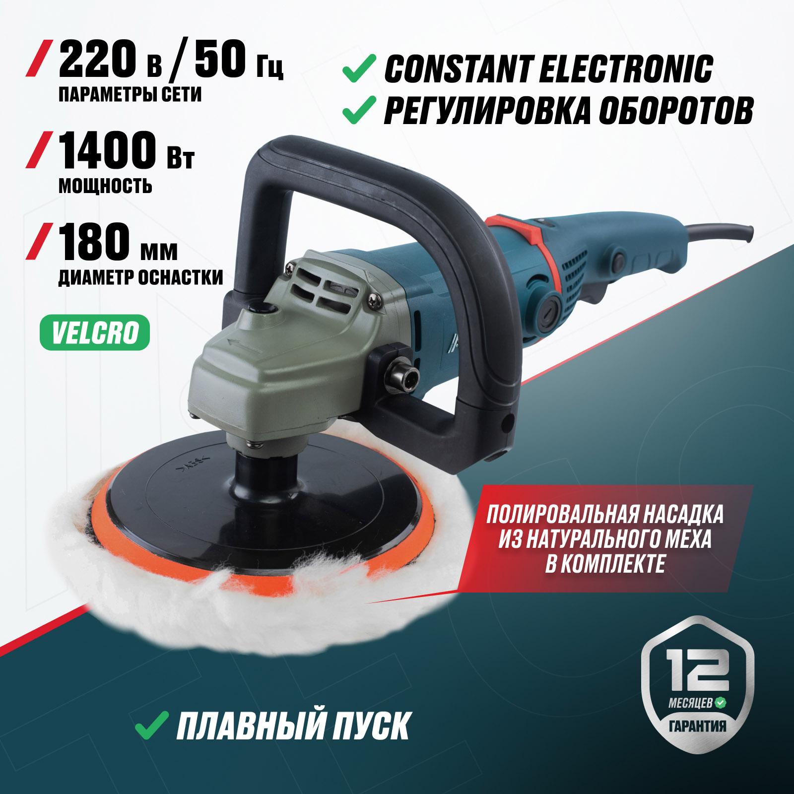 - Constant Electronic — стабильные обороты под нагрузкой — поддерживает заданную скорость вращения даже при повышенном сопротивлении, обеспечивая равномерный результат полировки.