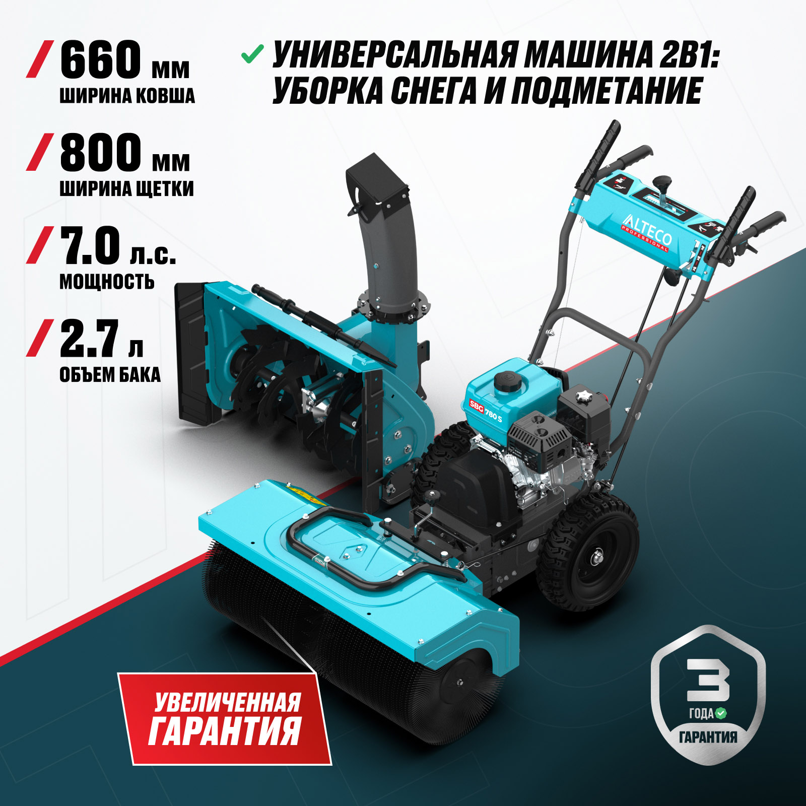 - Универсальная машина 2в1: уборка снега и подметание — сочетает функции снегоуборщика и подметальной техники, обеспечивая удобство и эффективность круглогодичной эксплуатации.