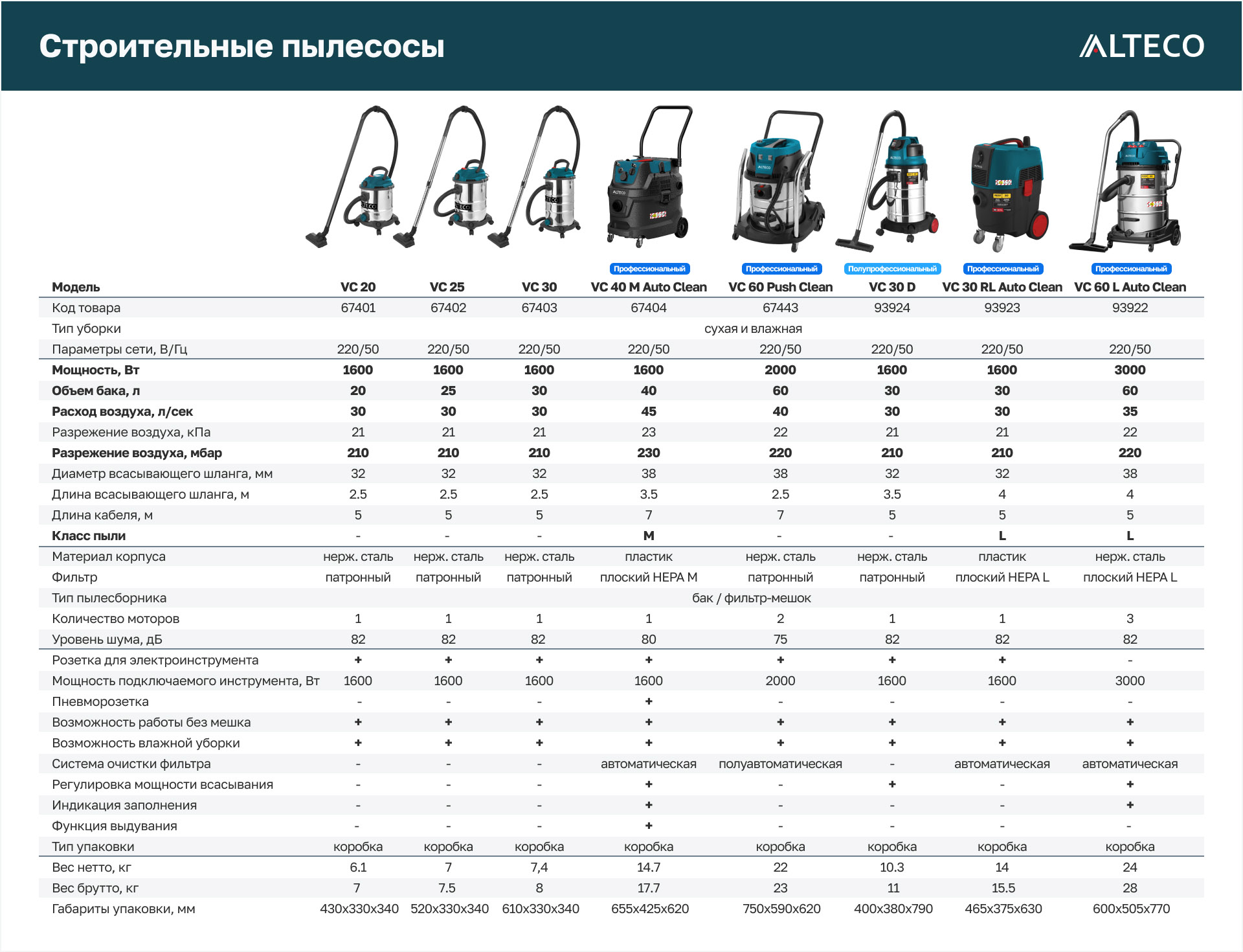 - HEPA-фильтр класса L — улавливает до 99% мелкой пыли, обеспечивая безопасную и чистую работу на строительных объектах.