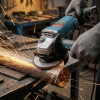 - Быстросъемный защитный кожух — надёжно защищает от искр и абразивных частиц, легко регулируется без инструмента.